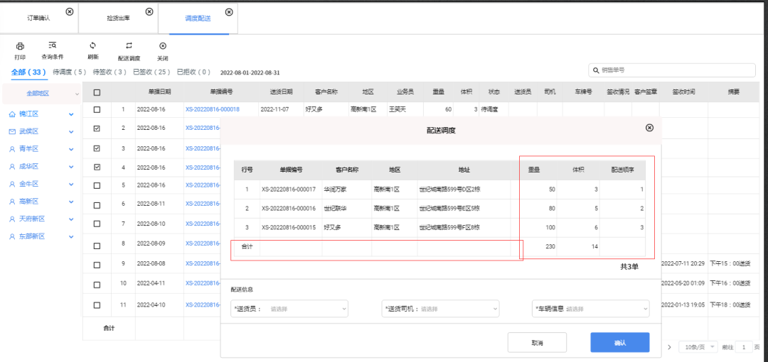 業(yè)務場景:倉管員揀貨裝箱后,可以根據(jù)路線(地區(qū)),訂單貨物多少合理規(guī)劃車輛裝載,配車發(fā)貨,出車相關登記。
