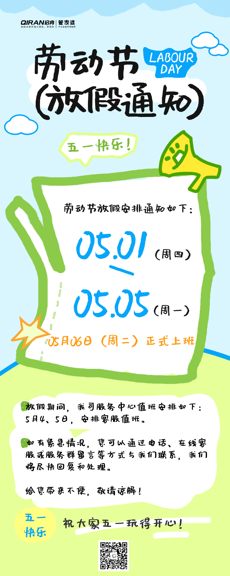 公告 | 啟冉軟件勞動(dòng)節(jié)放假通知